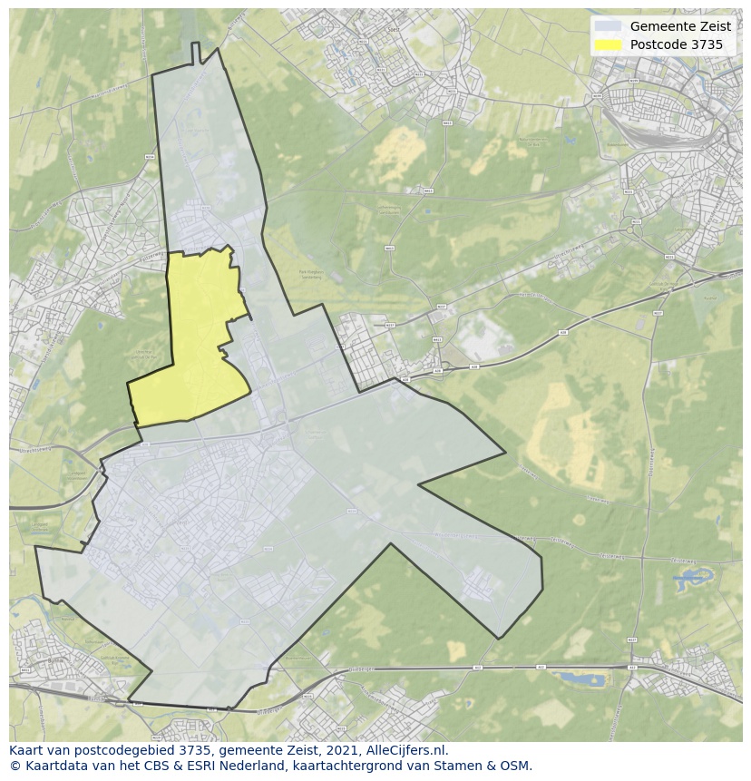 Huishoudens in Bosch en Duin postcode 3735